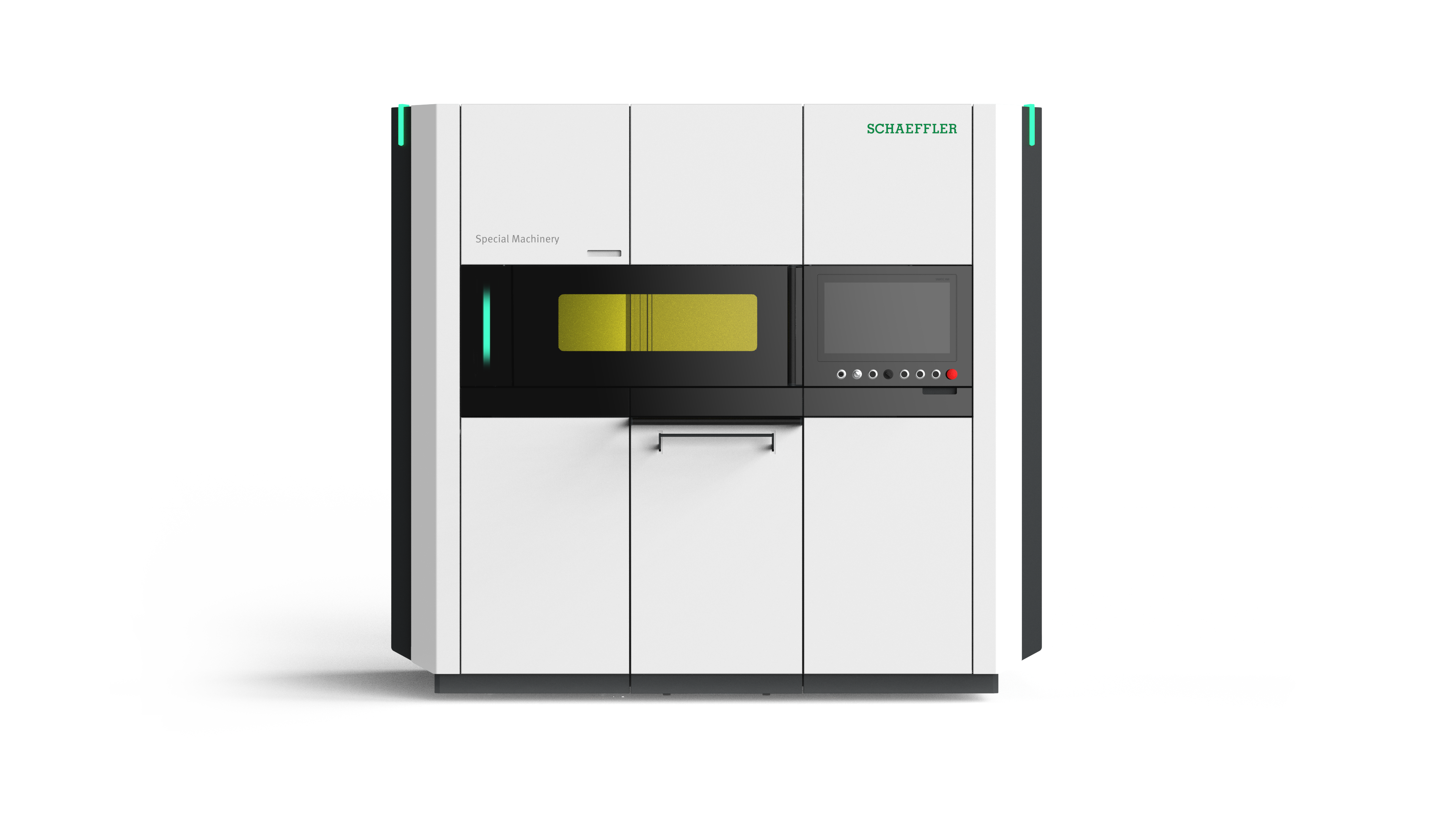 Für die Gestaltung der Anlage wurde die Formensprache bestehender Geräte des Unternehmens analysiert – darauf aufbauend wurde eine eigenständige, markante und skalierbare Formensprache entwickelt, die durch die Integration bestehender Gestaltungsmerkmale dennoch einen klaren Bezug zum bestehenden Produktportfolio von Schaeffler herstellt.
